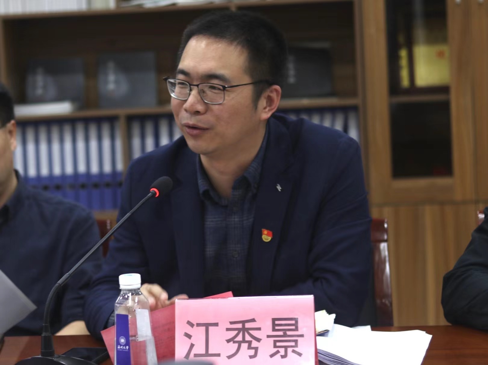 党委书记江秀景讲话。他充分肯定了各支部的工作成效,认为支部书记能把自己摆进去、把职责摆进去,抓党建有思路、有方法、有成效,述职汇报认识深、党味浓、显特色。他指出,今年是学院冲刺申博目标的关键之年,也是争创党建“标杆院系“的关键之年。学院各级党组织要围绕学校中心任务,聚焦学院冲刺“1623”工作主题主线,凝心聚力、踔厉奋发,推进“一体融合、五径赋能、六维提升、三制保障”党建工作体系建设,推动党建与业务深度融合,着力实现“党建基础强、融入机制优、推动发展好”工作目标。
