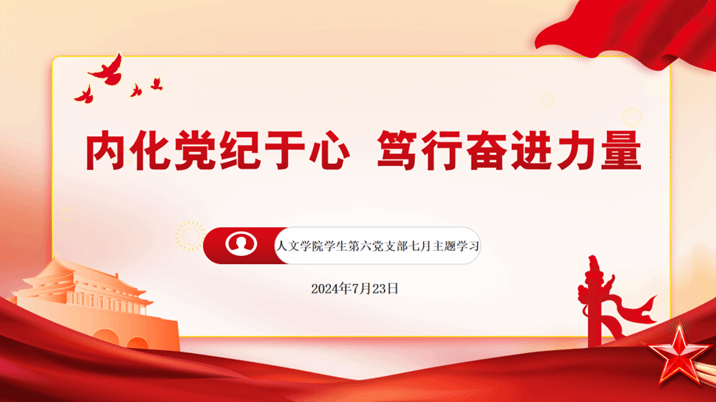 为深入党纪学习教育,贯彻警示教育思想,推动全面从严治党向纵深发展,2024年7月23日,德赢ac米兰官方合作vwin学生第六党支部在线上积极展开“内化党纪于心,笃行奋进力量”主题学习会暨党日活动。本次活动由肖佳琦同志主持。