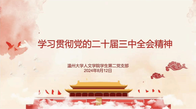 为深入学习贯彻党的二十届三中全会精神,推动党的二十届三中全会精神融入到日常生活和学习之中,2024年7月28日与8月12日上午,德赢ac米兰官方合作vwin学生第二党支部于线上开展了“深入学习贯彻党的二十届三中全会精神”主题党日活动。会议由唐佳楠同志主持。