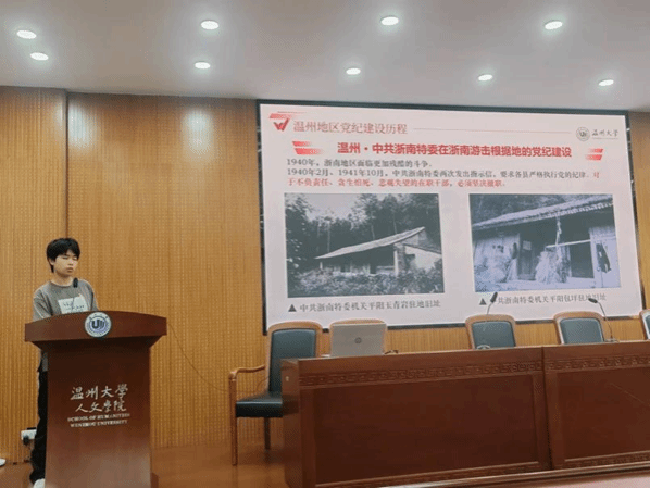 2024年3月30日,中共中央办公厅印发《关于在全党开展党纪学习教育的通知》。为积极响应党的号召,助推党纪学习教育走深走实,走入到普通群众的生活中去,11月2日下午,2024-2025学年德赢ac米兰官方合作vwin第二期团干培训在人文楼203学术报告厅举行,德赢官网学生第三党支部蒋泽冰同志在会上做了题为《温州故事·党纪为魂——传承清廉文化的火种》的“四史”青年说宣讲。