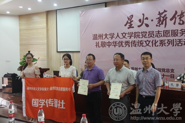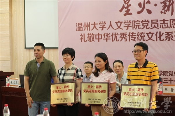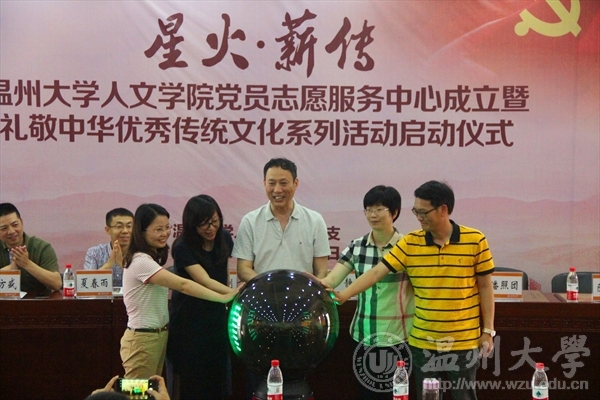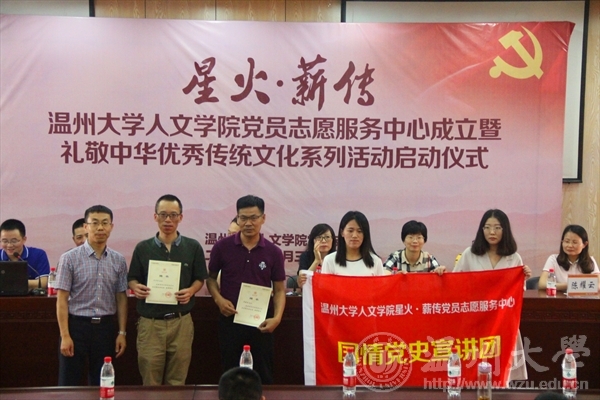 5月31日下午,德赢ac米兰官方合作vwin党总支在北校人文楼203学术报告厅顺利召开“星火·薪传”党员志愿服务中心成立暨“礼敬中华”优秀传统文化系列活动启动仪式大会,德赢ac米兰官方合作vwin党委副书记牟德刚、德赢ac米兰官方合作vwin党总支书记吴静、组织部副部长夏春雨、宣传部副部长冯方盛、温州市文化馆馆长阮静、大学城附属学校副校长潘照团、乐清市芙蓉镇宣传部长陈耀云出席本次大会,大会由党总支副书记朱启鑫主持。