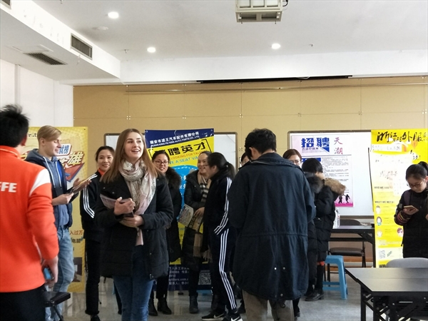 本次招聘会吸引了浙江省对外服务公司、温州三角洲投资顾问有限公司等数十家企业前来招聘,2018届毕业生和大二大三在校生都积极应聘。每家企业的招聘人员都井然有序地进行了招聘会的准备工作,招聘会现场如火如荼,同学们和招聘公司进行了面对面的交流,就公司各项信息和个人要求等进行洽谈。