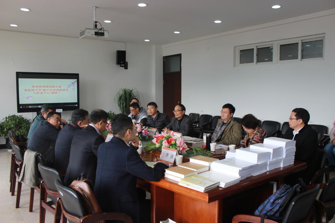 12月26日上午,浙江省社会科学界联合会党组成员、副主席邵清莅临德赢ac米兰官方合作vwin,在薛伟和方益权两位副校长的陪同下,对浙江省哲社A类重点研究基地德赢ac米兰官方合作vwin“浙江传统戏曲研究与传承中心”进行了调研和指导。在德赢官网213会议室,与校领导、院领导以及中心人员举行了深入、融洽的对话。座谈会由校人文社科处处长刘玉侠教授主持,温州市社科联副主席卢达也参加了座谈会。