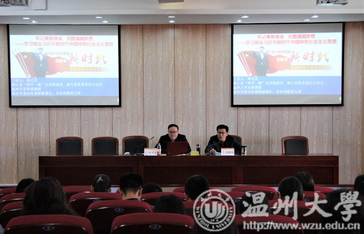 2019年4月12日13:30,迎着飔飔春风与阵阵花香,德赢官网在北校区人文楼203学术报告厅成功举办了以“‘牢记青春使命,共圆强国梦想’——学习领会习近平新时代中国特色社会主义思想”为主题的讲座。本次讲座的主讲人为我校客座教授林式其,我院副院长刘建国出席。