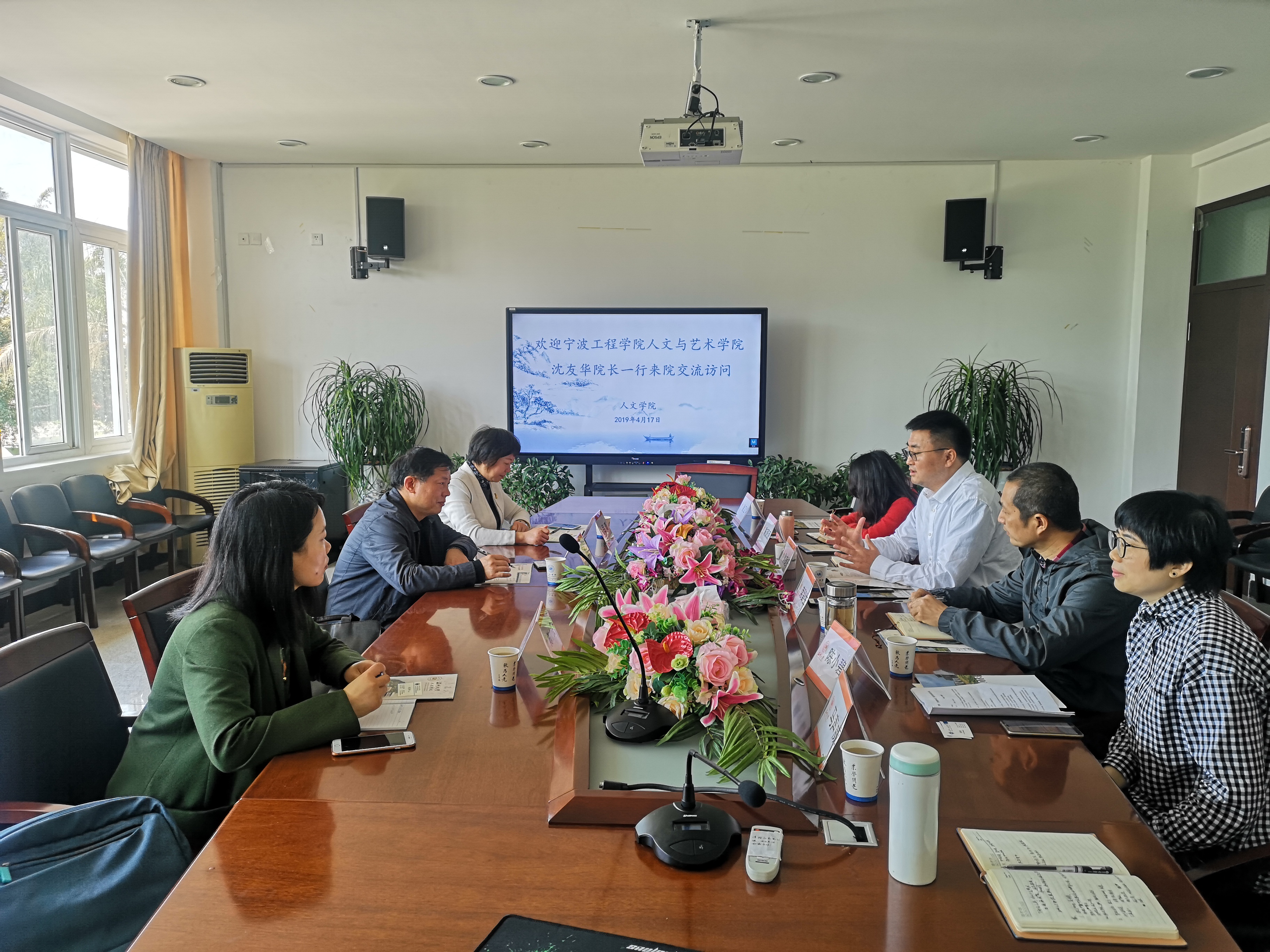 4月17日上午,宁波工程学院人文与艺术学院院长沈友华,副院长吕瑾及中文系副教授陈小亮来德赢官网交流访问。德赢官网孙良好院长、席留生副院长、中文系主任陈源源、广告系主任徐卫华、大学语文负责人陈小碧和办公室主任马声威热情接待了他们。双方就应用型学科专业建设、公共课程大学语文教学情况、专业硕士人才培养等方面进行了深入交流。