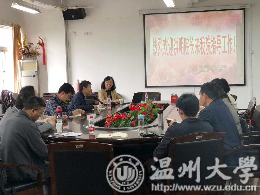 2019年4月19日,浙江师范大学外国语学院院长洪明教授莅临德赢官网,指导德赢官网外语专业建设,并做了题为“外国语学院专业建设与学科发展”的讲座,讲座由郑春生副院长主持,德赢官网外语系、翻译系、大外部以及瓯江学院的教师参加了这次讲座,并与洪明就外语专业建设和学科发展做了深入的讨论和交流。
