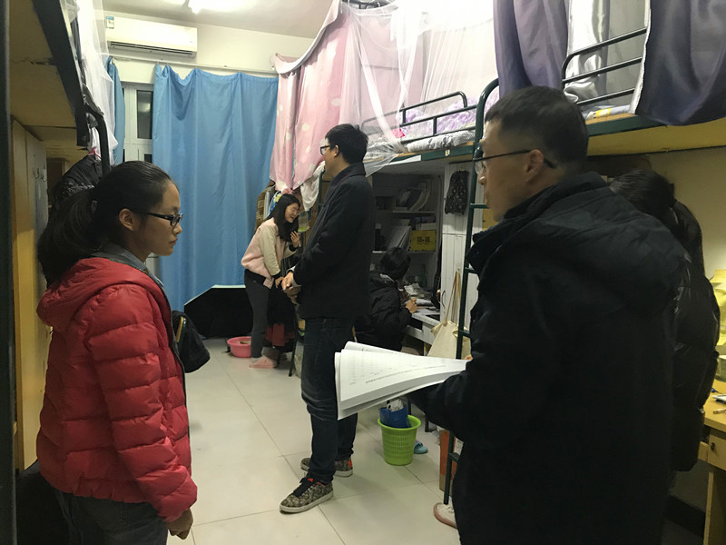 为加强寝室安全管理,增强学生宿舍安全意识,营造良好的期末复习迎考环境,2019年12月19日晚,德赢官网开展了寝室安全大检查活动。院党委副书记魏一、学工办主任刘纪峰、辅导员申业磊、李丹萍一行赴超豪学区走访检查学生寝室。