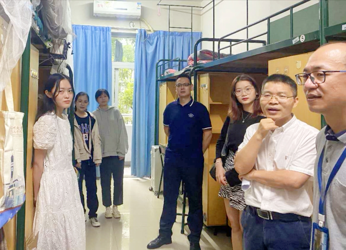 德赢官网领导非常关心新生报到后的生活适应情况,25号,院长孙良好、院党委书记吴静、副院长郑春生、院党委副书记魏一、副院长陈源源、张真老师携辅导员、班主任逐一走访全体新生寝室。在深入走访过程中,就新生的饮食、住宿、环境等问题进行了细致地询问。学院党委书记吴静关心学生选择专业的初衷与对未来的规划,她建议新生同学做好职业规划,积极尝试大学生活的各种活动,并希望同学们在后续生活里奋发有为,积极进取,彼此互帮互助,营造良好的学习环境。