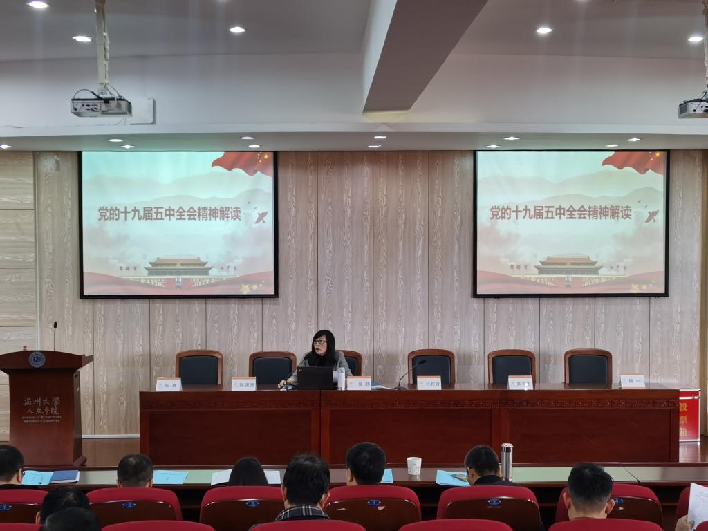 11月25日下午,学院召开全院教职工大会,学习传达党的十九届五中全会精神,党委书记吴静做专题辅导报告。