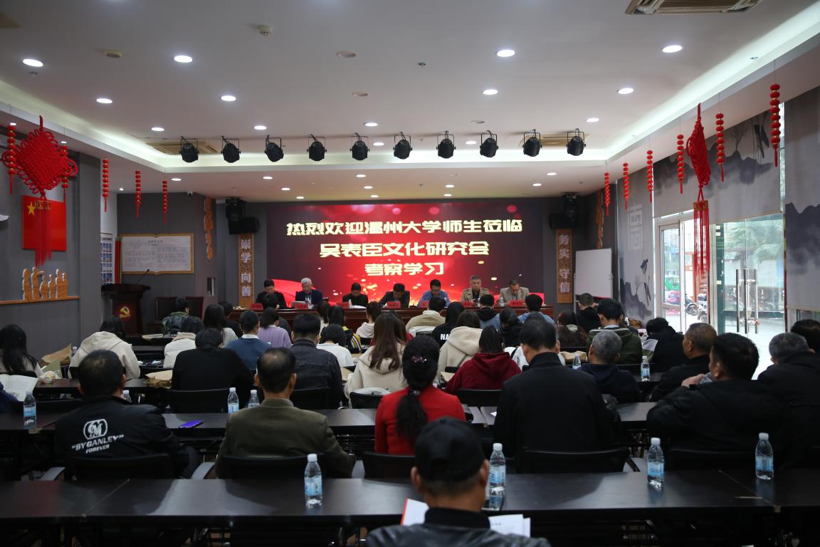 29日上午,吴表臣文化研究会成立大会在龙湾区龙水社区的弘德礼堂举行,参加大会的专家学者、吴氏后裔、德赢ac米兰官方合作vwin历史专业师生等有100多人,大会由龙湾区历史学会副会长兼秘书长孙建胜主持,他代表会议方在致辞中对各位的到来表示热烈欢迎。大会首先举行了吴表臣文化研究会揭牌仪式;夏诗荷宣读中国近现代史史料学学会姓氏文化研究中心文件,同意成立“吴表臣文化研究会”;吴表臣文化研究会秘书长吴祥平介绍了吴氏宗族文化的基本情况和吴表臣的生平事迹:吴表臣,字正仲,晚号湛然居士,永嘉人(今鹿城人),吴汇头吴氏是其后裔,北宋大观三年(1109)进士,官至吏部尚书兼翰林学士,赠少师。吴表臣作为南宋初期名臣,有政绩有名声,历代温州府志和永嘉县志都将吴表臣名列乡贤祠。刘建国教授给吴表臣文化研究会授牌,龙湾区社科联副主席、龙湾区历史学会会长潘伟光介绍了永嘉场的历史沿革、社会变迁、龙湾的历史文化及社会经济发展情况;龙湾新闻台丁欣华作了重要的讲话,非常感谢温大师生来龙湾考察调研,龙湾文化底蕴非常深厚,地域特色鲜明,是历史文化研究风水宝地,特别当地群众自发组织历史文化研究热情高涨,希望借助温大雄厚人才优势,强大教研水平,多多来龙湾走走看看,深入挖掘龙湾历史文化资源,提升文化历史研究水平,把龙湾案例更多地写入你们的课题论文中,更好地宣传龙湾推介龙湾,相信吴表臣文化研究会在德赢ac米兰官方合作vwin历史专业师生指导下,更上一个新台阶;刘建国教授作了总结发言,认为龙湾历史深厚,人杰地灵,这次温大德赢ac米兰官方合作vwin历史专业师生到吴表臣文化研究会考察,深入社区,很接地气,有利于了解吴氏文化、吴表臣的生平事迹,希望同学们做好对接工作,利用吴氏文化研究会提供的《湛然家风——宋吏部尚书吴表臣吴汇头资料汇编》等材料,回学校对吴表臣做些深入研究,可把该内容作为毕业论文和课题选题,为龙湾历史人物的研究贡献自己的智慧和力量,感谢吴表臣文化研究会对此会的大力支持与精心组织。大会在热烈的掌声中圆满落下帷幕,接着大家参观了吴表臣图片展、龙水社区德文化宣教馆。