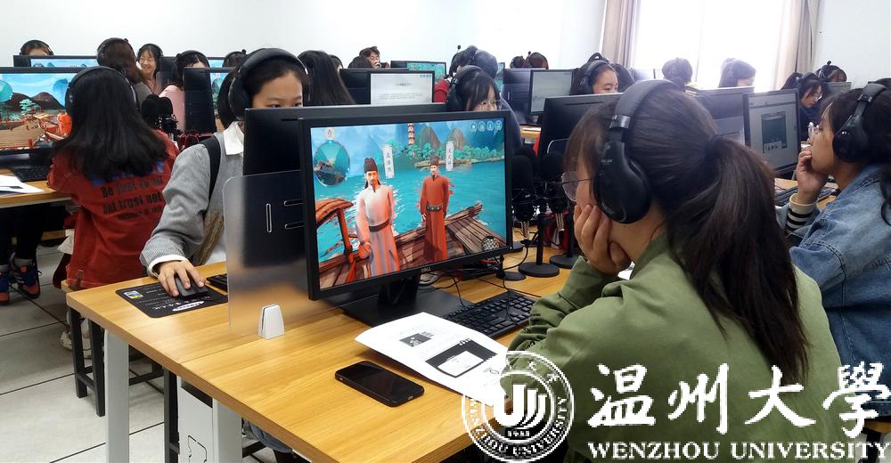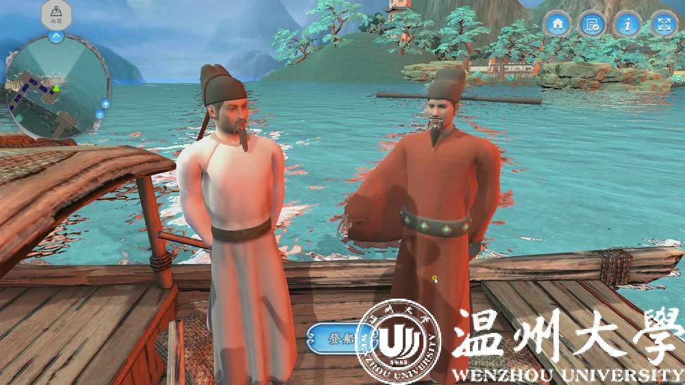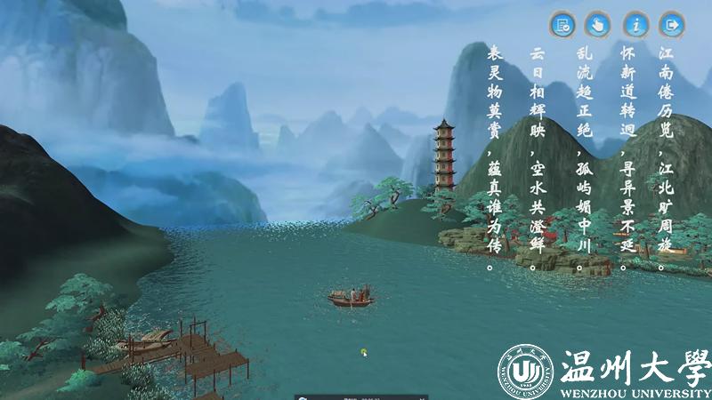 今年11月,《山水诗之意境体验虚拟仿真实验教学项目》被正式认定为国家级虚拟仿真实验教学一流课程,是全国首批文学类的虚拟仿真实验教学项目,也是浙江省唯一的文学类虚拟仿真实验教学课程。2017年9月,该项目正式在温大德赢ac米兰官方合作vwin上线试课,创新教学模式,深受学生欢迎。温州作为山水诗发源地,研发团队将此作为教学项目主题,学生可选取山水诗鼻祖谢灵运、山水诗代表诗人孟浩然、文天祥等文人作为虚拟仿真实验中的特定角色,以江心屿作为特色地标。在技术渲染的手段下,学生可以在充满意境的虚拟仿真环境中沉浸式地学习古典诗词,真正达到在自主学习过程中掌握系统化知识的目的。