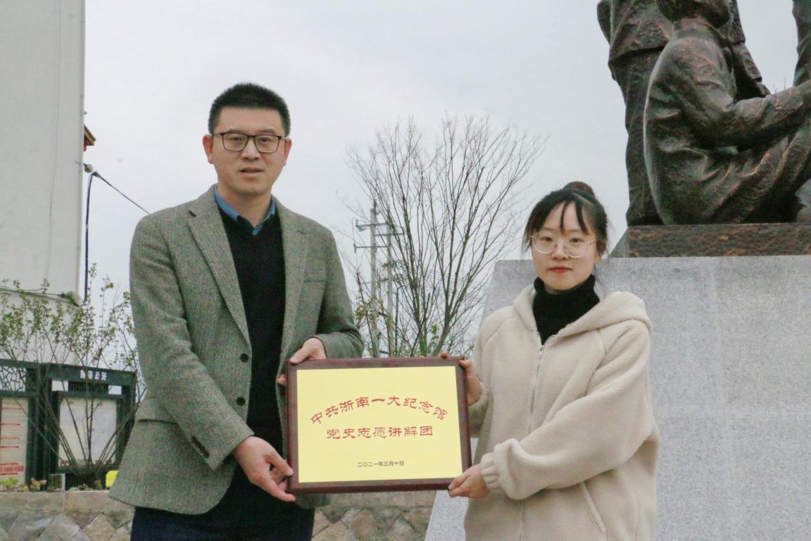 活动伊始,为更好的开展校地党建合作,瓯海区仙岩街道党工委书记金海敏为学生党史宣讲团授“中共浙南一大纪念馆党史志愿讲解团”牌,希望德赢官网党史宣讲团能够充分学习和发掘浙南一大党史,为来纪念馆参观的群众当好讲解员。据悉,“四史”青年说项目是德赢ac米兰官方合作vwin学生党建特色品牌创建项目之一,该项目力主通过朋辈讲四史的新颖形式,激发校内外青年对“四史”的学习热情,此次授牌恰是项目推进中服务地方的重要一环。