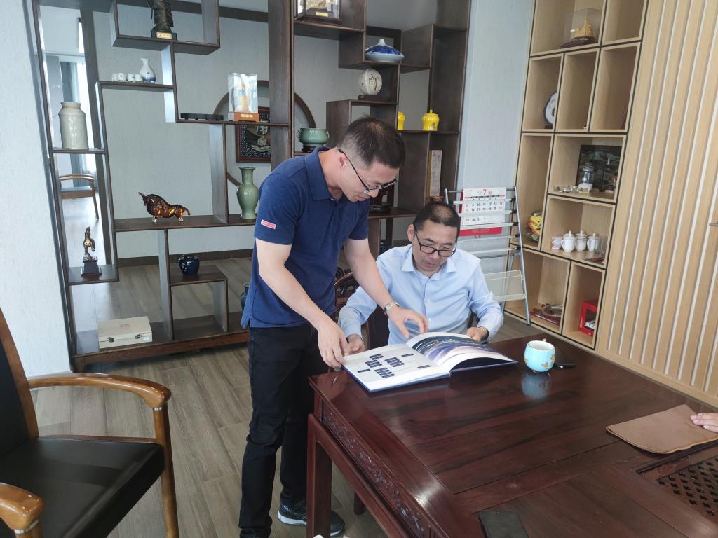 交流中,魏书记向傅昌宝真诚地表达了母校的问候和关怀,并赠送了定制的校友纪念册。魏书记表示,学院高度重视校友工作,学院的发展离不开广大校友的关心和支持,众多杰出的校友更是学院的宝贵财富和无价之宝。接下来,学院将全面深化推进校友工作,成立德赢ac米兰官方合作vwin校友会为每一位校友做好服务,更好地促进校友和母校的沟通交流,实现校友和学校事业共赢发展。刘建国老师是傅昌宝的大学班主任,两人共同回忆了大学时光,虽过去三十多年,但大学的点点滴滴依然历历在目。刘老师对其现在的发展给予了充分的肯定,也对其以后的发展寄予了厚望,希望其能够不忘初心,砥砺前行,在自身发展的基础上不忘回馈母校,支持母校的发展。傅昌宝对学院老师一行的来访表示热烈的欢迎,感谢母校老师心系校友,对校友发展的关注。随后,他详细地介绍了公司概况、发展历程、主营业务以及发展愿景。