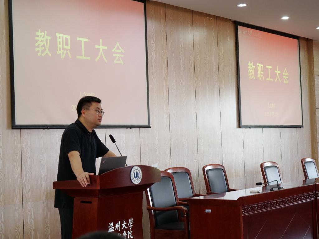 5月26日下午,德赢官网在203报告厅召开全体教职工大会。会议由学院党委书记吴静主持。
