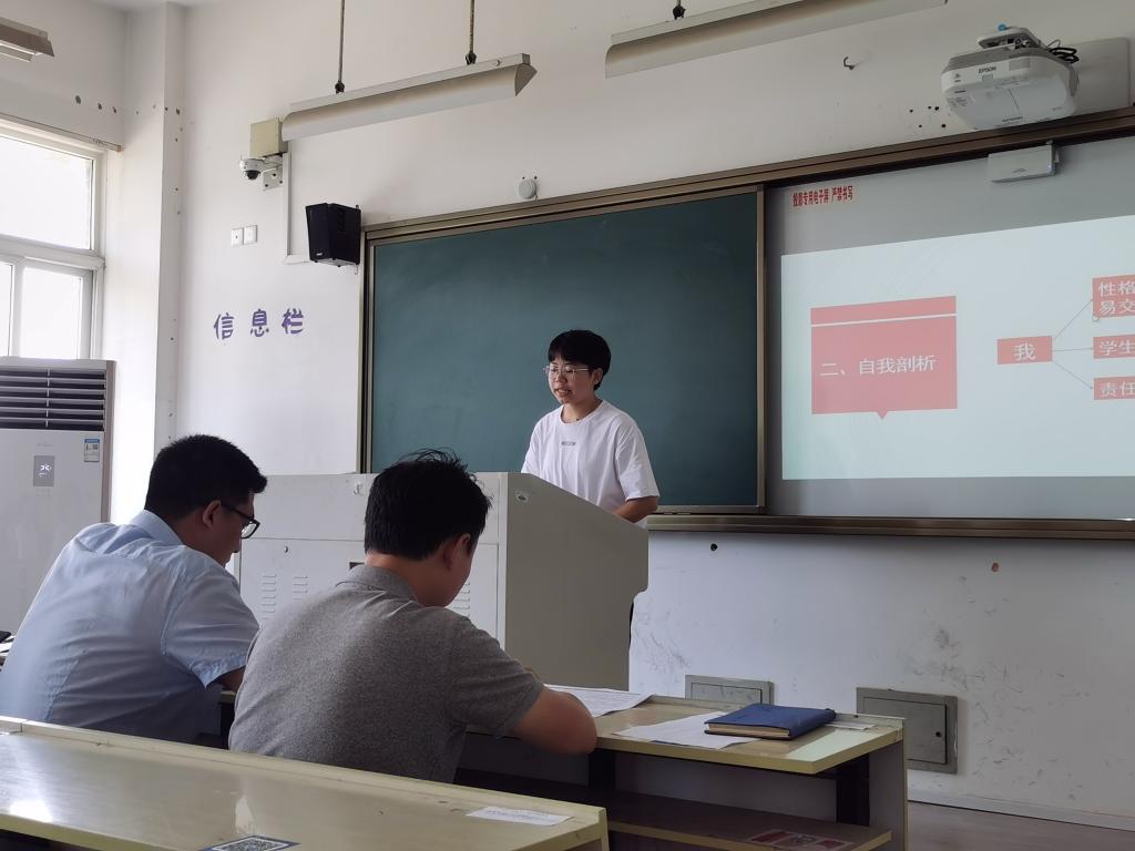 经个人申请,来自全院各班级的20位准大三学生依次上台进行竞聘宣讲,表述他们各自的优势与经验。屏幕上不断跳转的PPT,呈现出的是竞聘者们各自的风采。不论是优秀的学习成绩、丰富的工作经验,抑或深刻的思想体悟,它们传递的本质是一样的,都表达了竞聘者们对迎接新生工作的耐心、热情、决心以及责任与担当。他们用短短几分钟的时间,阐发了自己对班主任助理的独到理解。