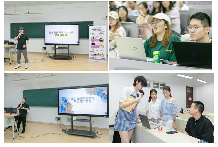 四位来自不同领域的精英向同学们分享了满满干货:前沿领域的最新探索,广告和数字技术的完美结合,品牌和创意的初心和本真,在德赢ac米兰官方合作vwin人文楼激荡起一场场创新和守正的头脑风暴。每一场讲座结束,同学们都非常踊跃地提问题,和大咖们激情互动,每一个同学的脸上都写满收获和喜悦。