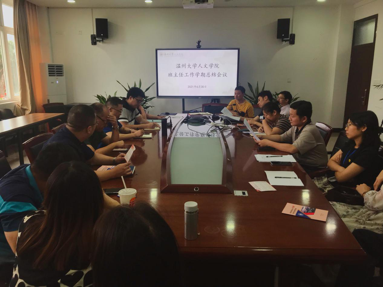 2021年6月30日下午,德赢官网2020-2021学年第二学期班主任工作总结会议于人文楼213会议室举行。院党委副书记魏一、全体班主任、全体辅导员出席本次会议。会议由学工办主任刘纪峰主持。