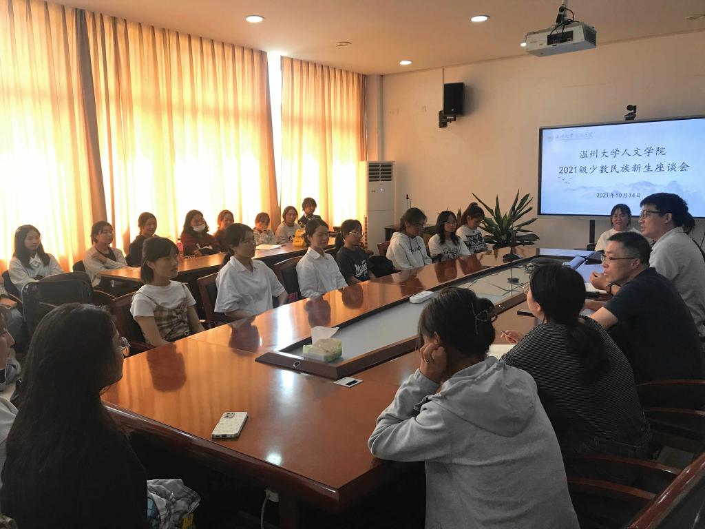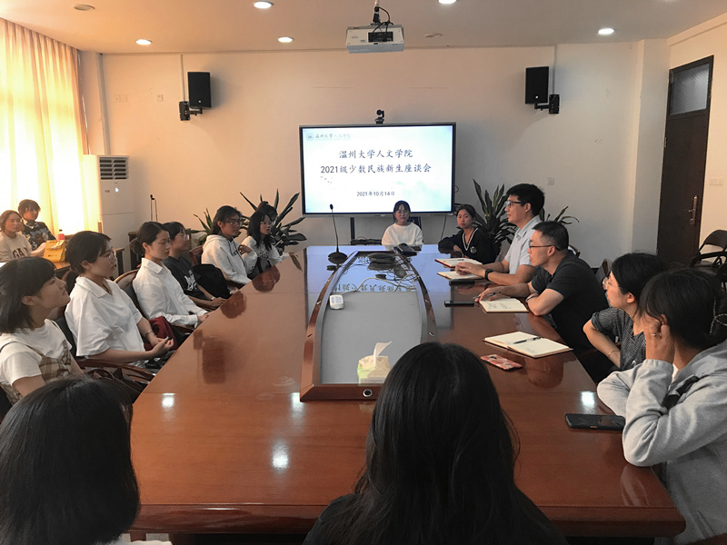为全面了解德赢官网少数民族新生的学习与生活情况,帮助他们更好更快地融入大学生活,2021年10月14日中午,德赢官网在人文楼213会议室召开了少数民族新生座谈会。学院党委副书记魏一、学工办主任刘纪峰、辅导员李丹萍、张丹妮以及全体2021级本研少数民族新生参加本次会议。会议由院学工办主任刘纪峰老师主持。