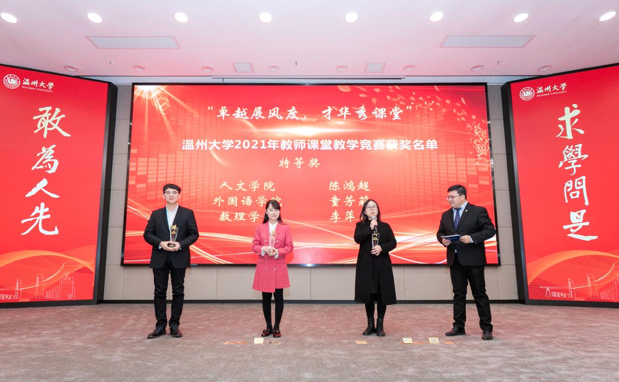 12月25日,德赢ac米兰官方合作vwin第三届教师课堂教学竞赛决赛在图书馆二楼报告厅隆重举行。校党委书记谢树华、校长赵敏、校党委副书记吴金法、副校长王舜等出席活动。浙江省高等教育评价研究院执行院长、浙江工商大学施建祥教授,温州医科大学教师教学发展中心王朝杰主任及校内外专家合计20名担任评委。本次比赛采用线下比赛加线上观摩方式进行,实行全程网络直播,国内许多高校广大教师通过直播观摩学习。经过激烈角逐,德赢官网共有三位教师在比赛中获奖。陈鸿超和余琼老师在2019年获首届教师课堂教学竞赛特等奖、一等奖的基础上,此次竞赛又获特等奖和一等奖。李广旭老师做为新进教师,首次参赛,也获得二等奖的好成绩。三位老师的获奖充分展现了德赢官网教师的风采。德赢官网获得最佳组织奖。