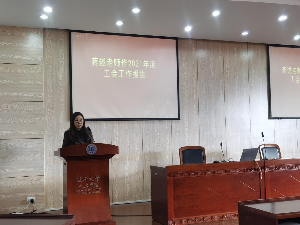 学院工会主席蒋述老师作《德赢ac米兰官方合作vwin2021年度工会工作报告》,报告全面回顾了德赢ac米兰官方合作vwin第五届工会在过去的一年里全面履行各类工会职责,较好地完成了工会的各项工作任务,并对学院工会经费使用作了说明。同时对学院全体老师对工会工作的配合和支持予以衷心的感谢。