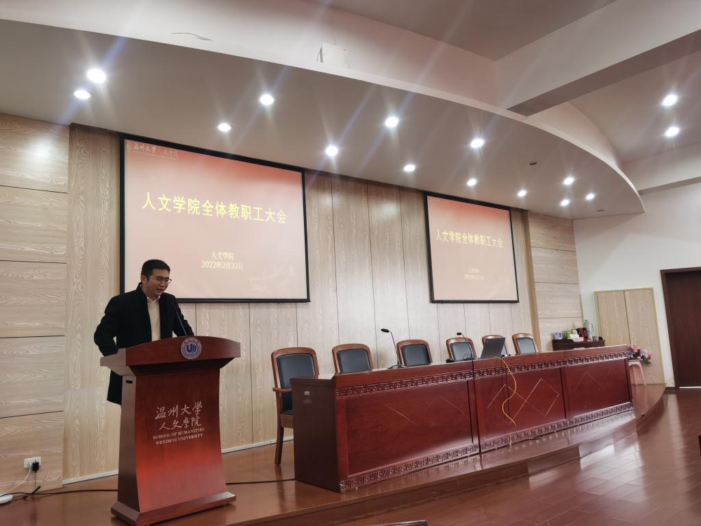 2月23日下午,德赢官网新学期第一次教职工大会在人文楼203报告厅召开,学院领导班子和全体教职工参加会议,会议由学院党委书记江秀景主持。