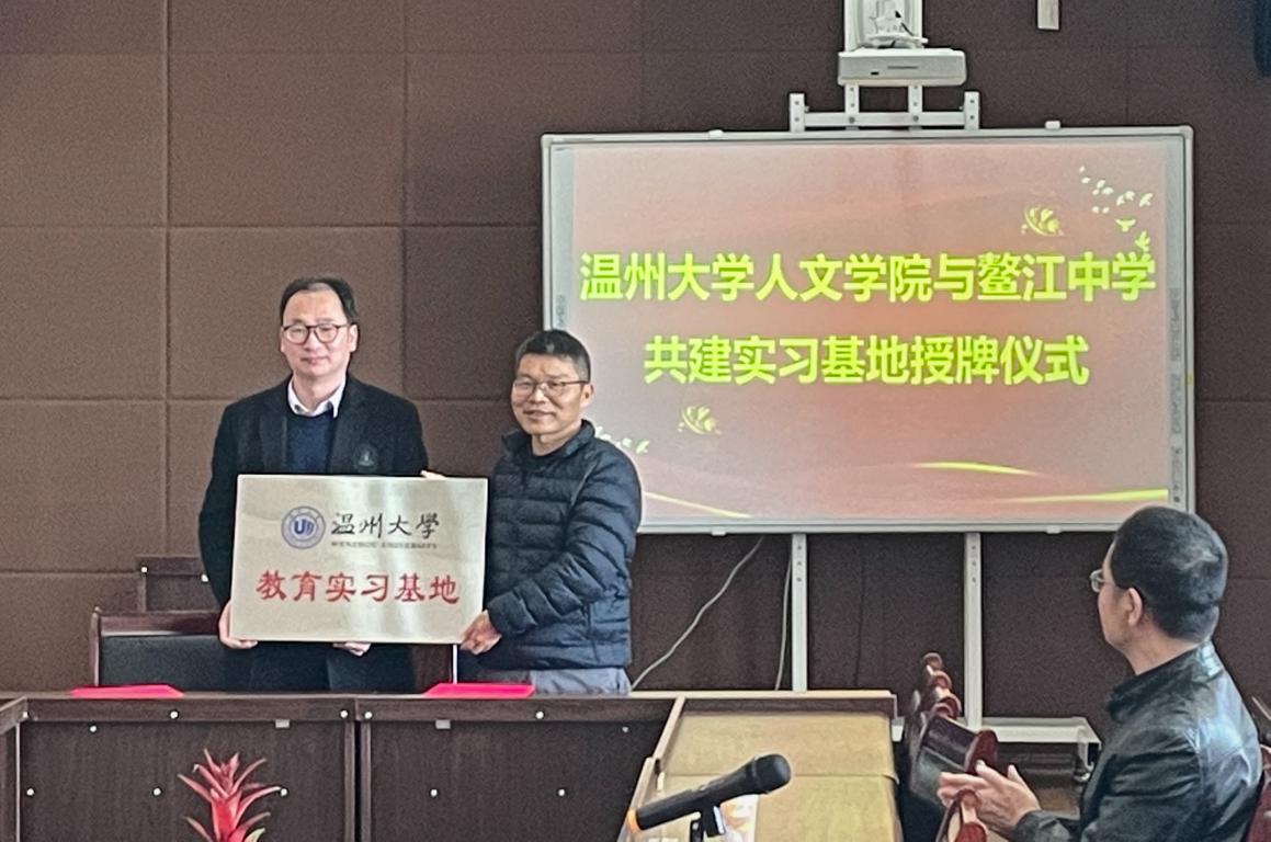鳌江中学李伟君校长对实习生的到来表示热烈欢迎,并向实习生简单介绍鳌江中学概况,希望实习生们通过此次实习,能够积累经验、丰富阅历、互进互助。鳌江中学高一年段副校长王大府老师向实习生们简单介绍了高一年级概况,并对实习生们提出了“看、问、勤、盯、解、离”等六点要求和建议。紧接着,鳌江中学政教主任陈晓瑜老师、教务处易会潮老师、高一历史备课组组长张剑老师和实习生代表林彦秀同学依次进行发言。随后,德赢ac米兰官方合作vwin副院长郑春生作总结讲话,郑院长首先介绍了今天的温大,欢迎鳌江中学学生报考德赢ac米兰官方合作vwin,同时对实习生们提出心学习、勤于创新;恪守规则、勇于创新;宽以待人、心怀感恩几点要求。最后,举行了德赢ac米兰官方合作vwin与鳌江中学共建实习基地授牌仪式,郑春生副院长与李伟君校长进行签约。