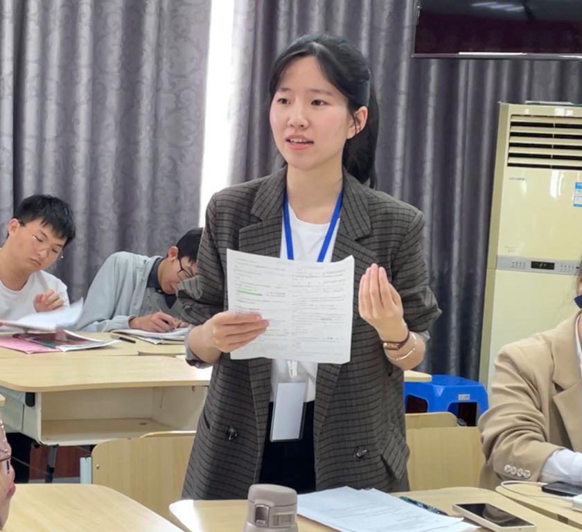 郭思宇老师首先肯定了吴陆发进同学对课堂的把控力,还肯定了她在实习过程中的认真态度,认为其对课堂中的学生关注度高,课程设计逻辑顺畅,也指出不足之处在于对课堂时间节奏的把控稍有欠缺,略有拖堂。
