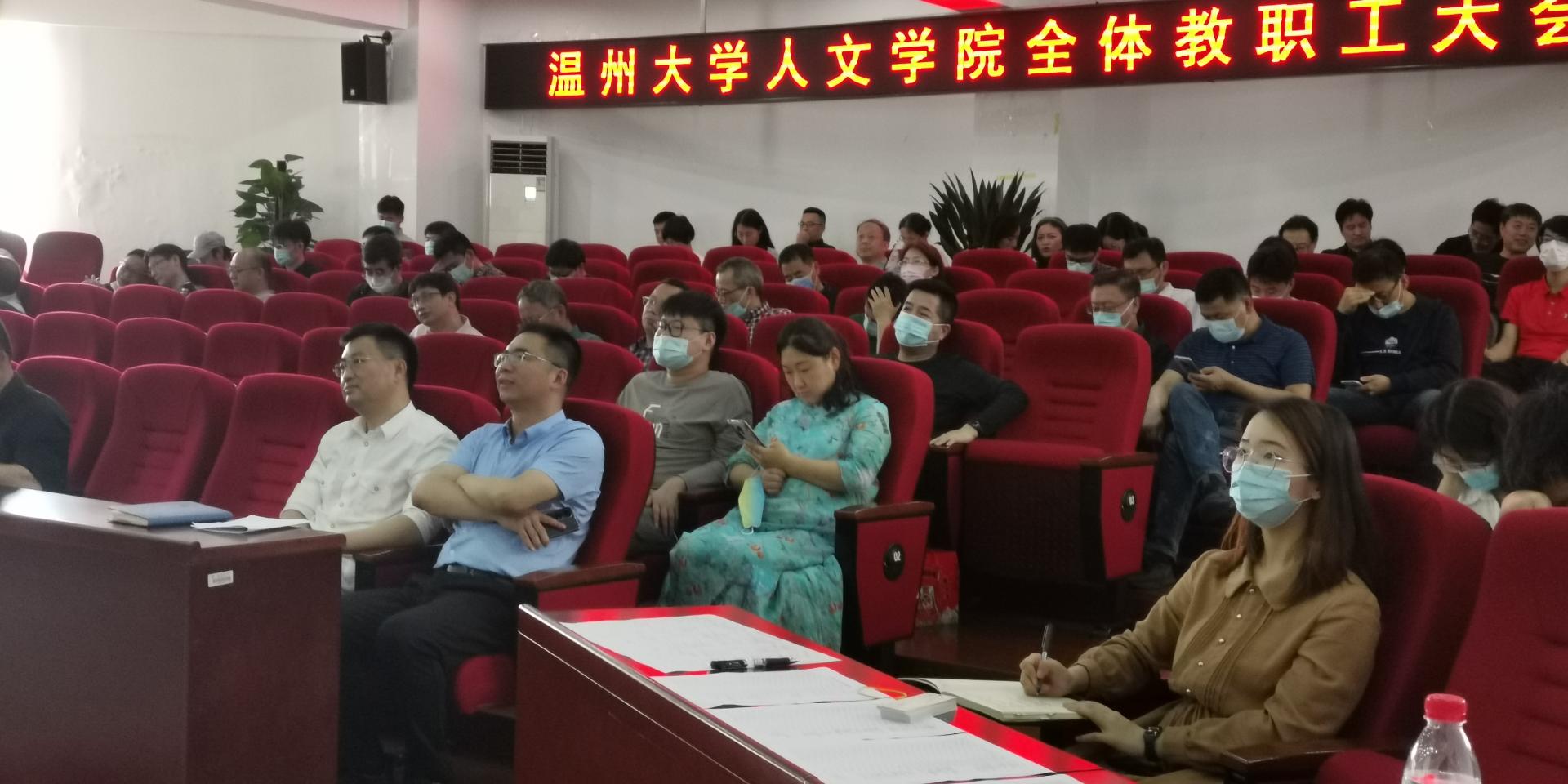 5月25日下午,德赢官网在人文楼203报告厅召开全体教职工大会,学院领导班子和全体教职工参加会议,会议由学院党委书记江秀景主持。