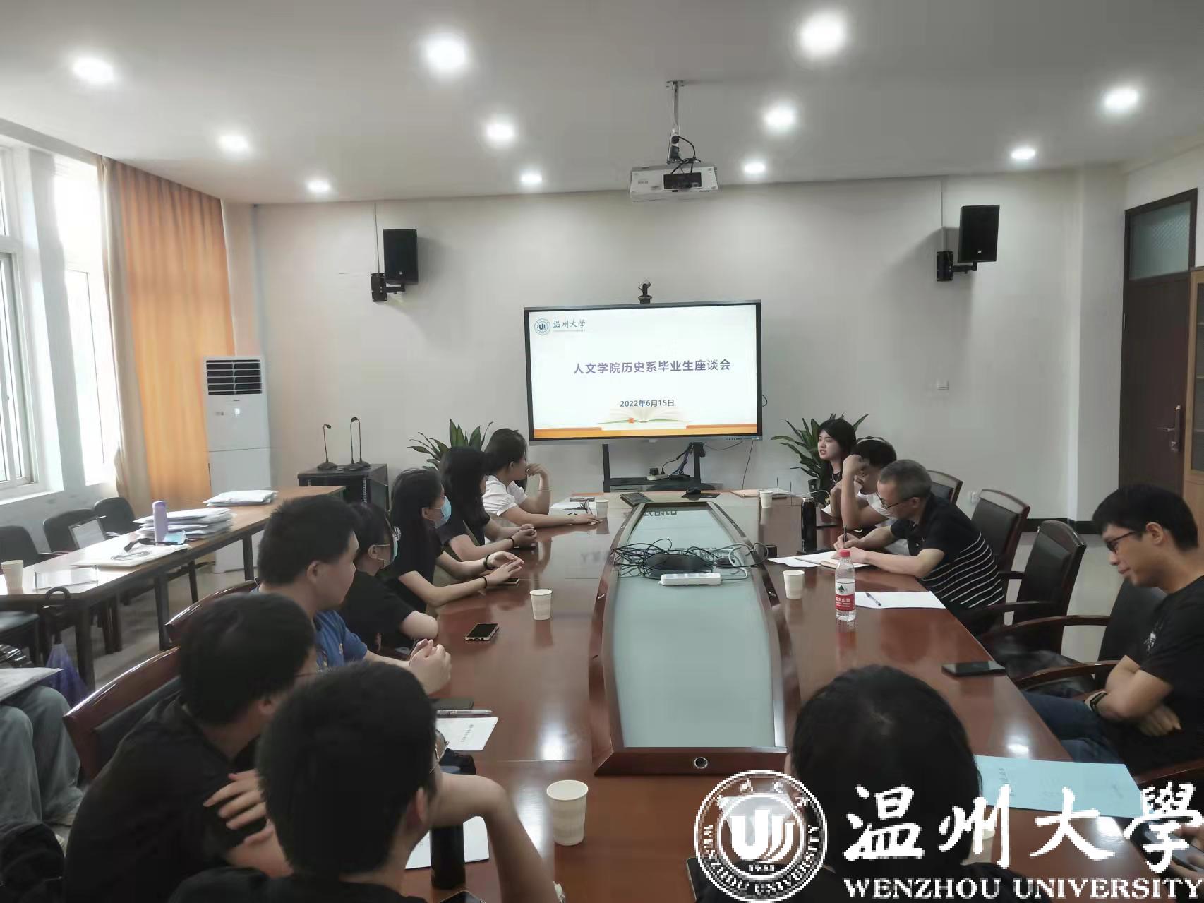 2022届本科生毕业在即,为广泛听取毕业生心声及建议意见,完善专业培养计划,更好地为学生成长成才服务,德赢ac米兰官方合作vwin历史系于6月15日下午15点在德赢ac米兰官方合作vwin213会议室召开毕业生座谈会。座谈会由系主任尤育号主持,出席座谈会的有刘建国、唐运冠、王印、陈鸿超等教师和18历本18名毕业生代表。