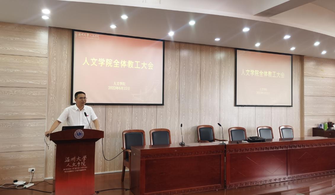 6月22日下午,德赢ac米兰官方合作vwin在203报告厅召开全体教职工大会。学院领导班子及全体教职工参加本次会议,会议由学院党委书记江秀景主持。