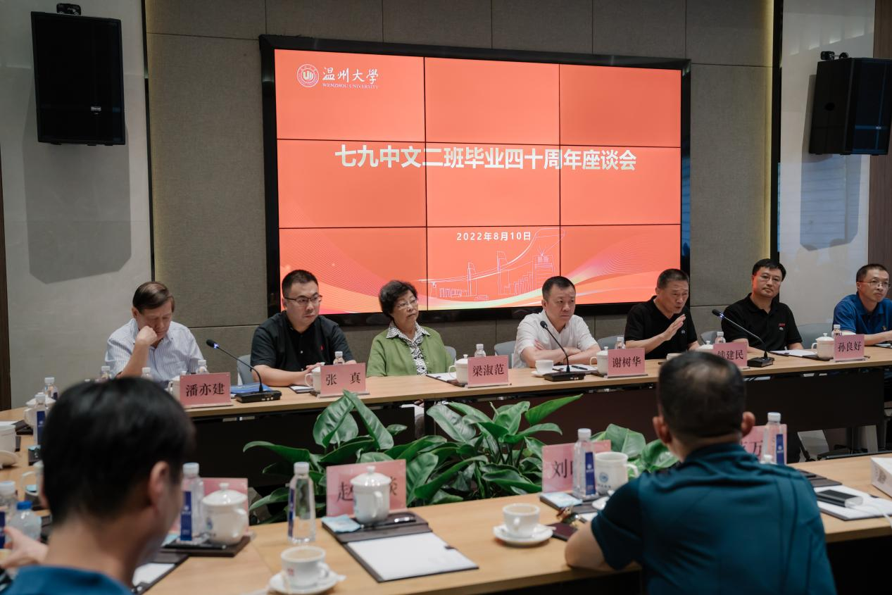 2022年8月10日上午,七九中文二班校友返校举行了毕业四十周年同学会。德赢ac米兰官方合作vwin党委书记谢树华出席,德赢ac米兰官方合作vwin院长孙良好、学院党委副书记魏一、七九中文二班校友等40余人参加。