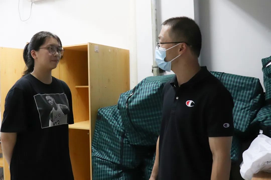院党委书记江秀景仔细地询问同学们的报到情况、住宿情况、新环境适应情况以及未来目标等,鼓励同学们要以积极的心态站在新的起点,树立远大理想,学好专业知识,培养家国情怀,立志做无愧于新时代的大学生,在未来有所发展、有所作为。同学们积极回应,表示了对老师走访的感谢。