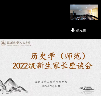 9月17日,德赢官网历史学系2022级新生家长座谈会顺利召开。此次会议采取线上线下相结合的方式,分别在人文楼213会议室和腾讯线上会议室同时进行。德赢ac米兰官方合作vwin副院长郑春生、党委副书记魏一、学工办辅导员申业磊,2022级历史学(师范)班主任刘子玉、张元伟,2022级历史学(师范)全体新生家长参加了会议。