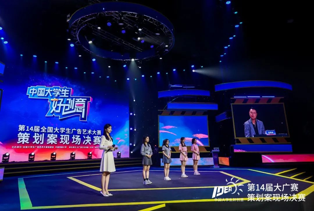 本届大广赛策划案现场决赛由中国传媒大学副校长张树庭、全国大学生广告艺术大赛组委会主任、中国传媒大学国家广告研究院院长丁俊杰教授线上视频致辞;全国大学生广告艺术大赛组委会副主任兼秘书长刘瑞武教授出席活动;4位专家评委、17位命题品牌嘉宾评委,参赛团队师生代表以线上线下两种方式参与现场提案。决赛盛况通过优酷视频、大广赛官方微播、云相册等平台面向全国观众同步直播。