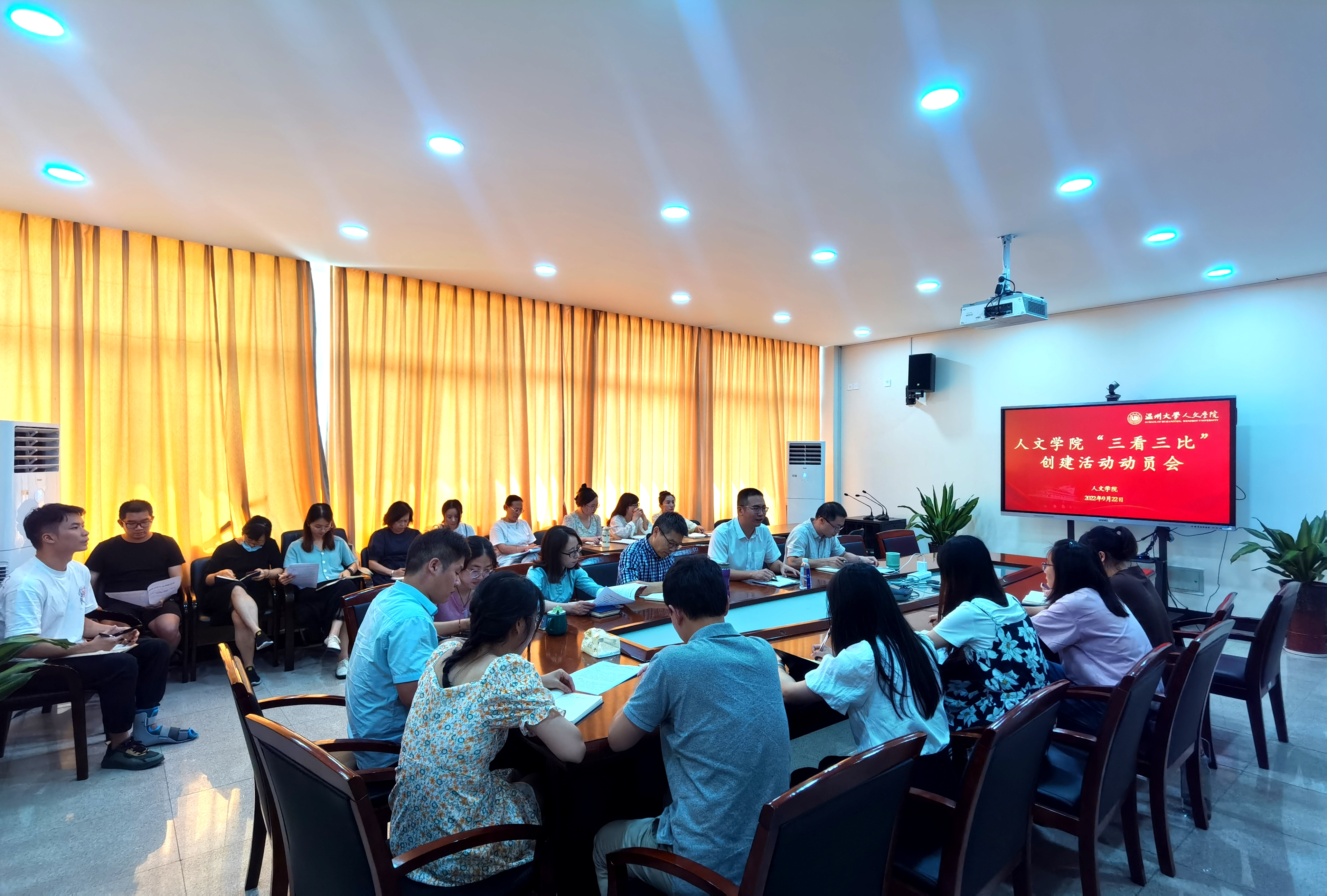 为进一步树立“服务科研、服务教学、服务师生”工作导向,打造唯实惟先、善作善成行政团队文化,着力提高行政服务效能和服务师生水平,2022年9月22日下午,德赢官网于人文楼213会议室召开“三看三比”创建活动动员会。学院相关院领导及全体行政人员参加会议,会议由学院党委书记江秀景主持。