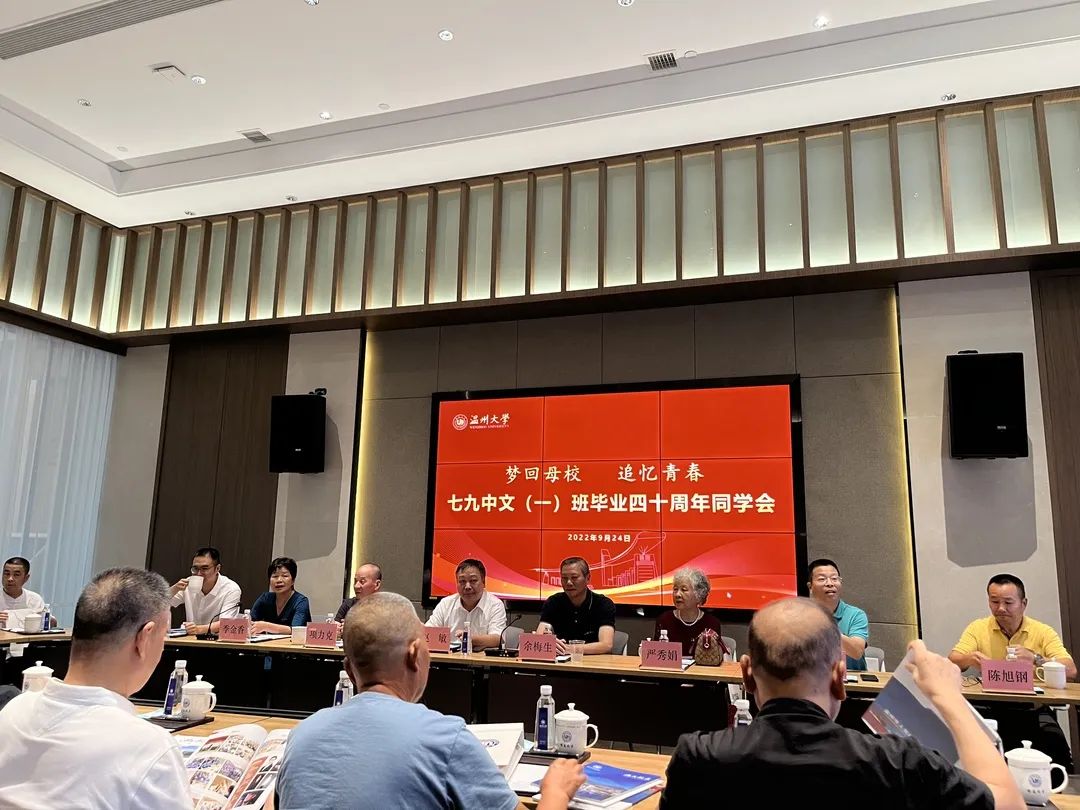 梦回母校,追忆青春。2022年9月24日,七九中文(一)班返校举行毕业四十周年同学会。德赢ac米兰官方合作vwin校长赵敏出席,温州市政协原主席、党组书记余梅生,浙江省政协办公厅原副主任项力克等30余位校友,校友办主任陈宏毅、德赢ac米兰官方合作vwin党委书记江秀景及相关人员,教师严秀娟、季金香参加。
