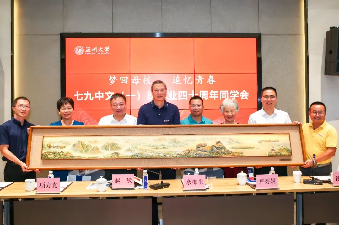 徐顺聪对母校的热情接待表示感谢,为母校的快速发展感到骄傲和自豪。他表示,为了感恩母校培养,校友余梅生、陈旭钢代表七九中文(一)班同学向母校德赢ac米兰官方合作vwin赠送瓯塑作品《山水温州》,衷心祝愿母校能够走出温州,走向中国乃至世界,未来母校能取得越来越好的发展。