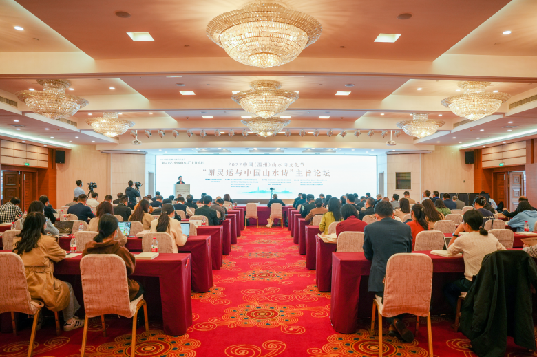 11月4日上午,谢灵运与中国山水诗主旨论坛在温州市人民大会堂举行。作为2022中国(温州)山水诗文化节的首场活动,论坛采用线上与线下结合的方式同步进行,来自海内外50余位专家、学者受邀与会。10位学者进行了精彩的主旨发言,从不同角度探讨中国山水诗文化。
