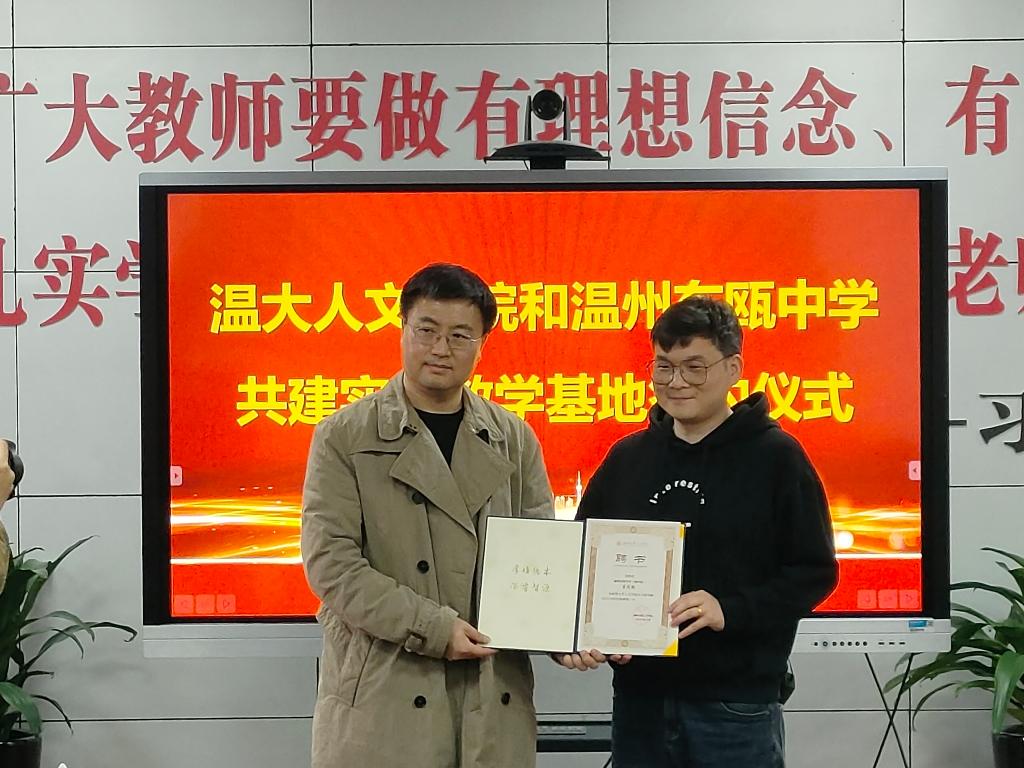 2023年3月21日星期二,德赢ac米兰官方合作vwin与温州东瓯中学的教育实习基地签约授牌仪式在温州市东瓯中学举行,并取得了圆满成功。德赢ac米兰官方合作vwin孙良好院长、陈源源副院长、魏一副书记、陈柳教授、洪之渊副教授,温州市东瓯中学王振哲校长、林月周督学以及各副校长、学科名师等出席了本次活动。