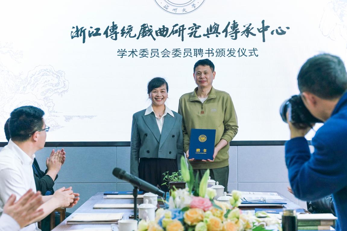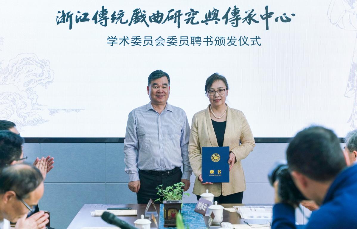 随后的中心学术委员会委员聘书颁发仪式上,德赢ac米兰官方合作vwin副校长徐和昆教授、戏曲中心主任俞为民教授、温州市社科联副主席叶雪影为浙江传统戏曲研究与传承中心学术委员会委员叶长海、杜桂萍、廖可斌、黄仕忠、王馗、朱恒夫、孙书磊、王宁、刘水云教授等颁发了中心学术委员会委员聘书。
