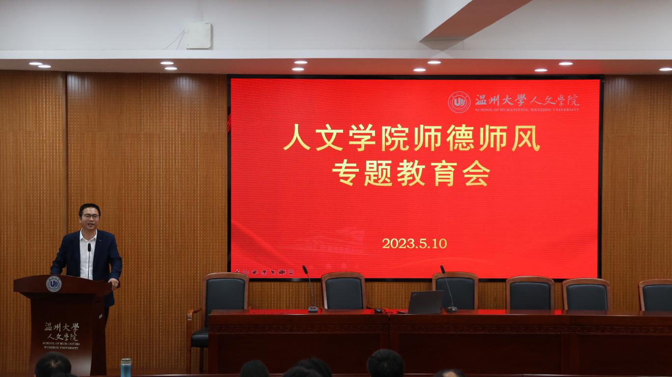 学院党委书记江秀景作师德师风警示教育。他从“师德师风的重要性”、“教师身份的特殊性”、“存在问题的突出性”三个方面分析了加强高校师德师风建设的必要性和紧迫性。他指出,教师是古老而神圣的职业,社会期待值、关注度高,全体教师务必要模范践行习近平总书记关于争做“四有”“六模范”好老师的要求,做到谨言慎行、廉洁从教,做到心有学生、心有敬畏,努力为党育人、为国育才。他强调师德师风问题专项整治工作是学院全面从严治党和清廉学院建设的重要内容,全体教职员工要以负面案例为戒,树立依法从教意识,严格规范从教行为,从自身、学院、学校整体利益出发,自觉维护和加强师德师风建设,为构建亲清师生关系和风清气正教育政治生态贡献力量。