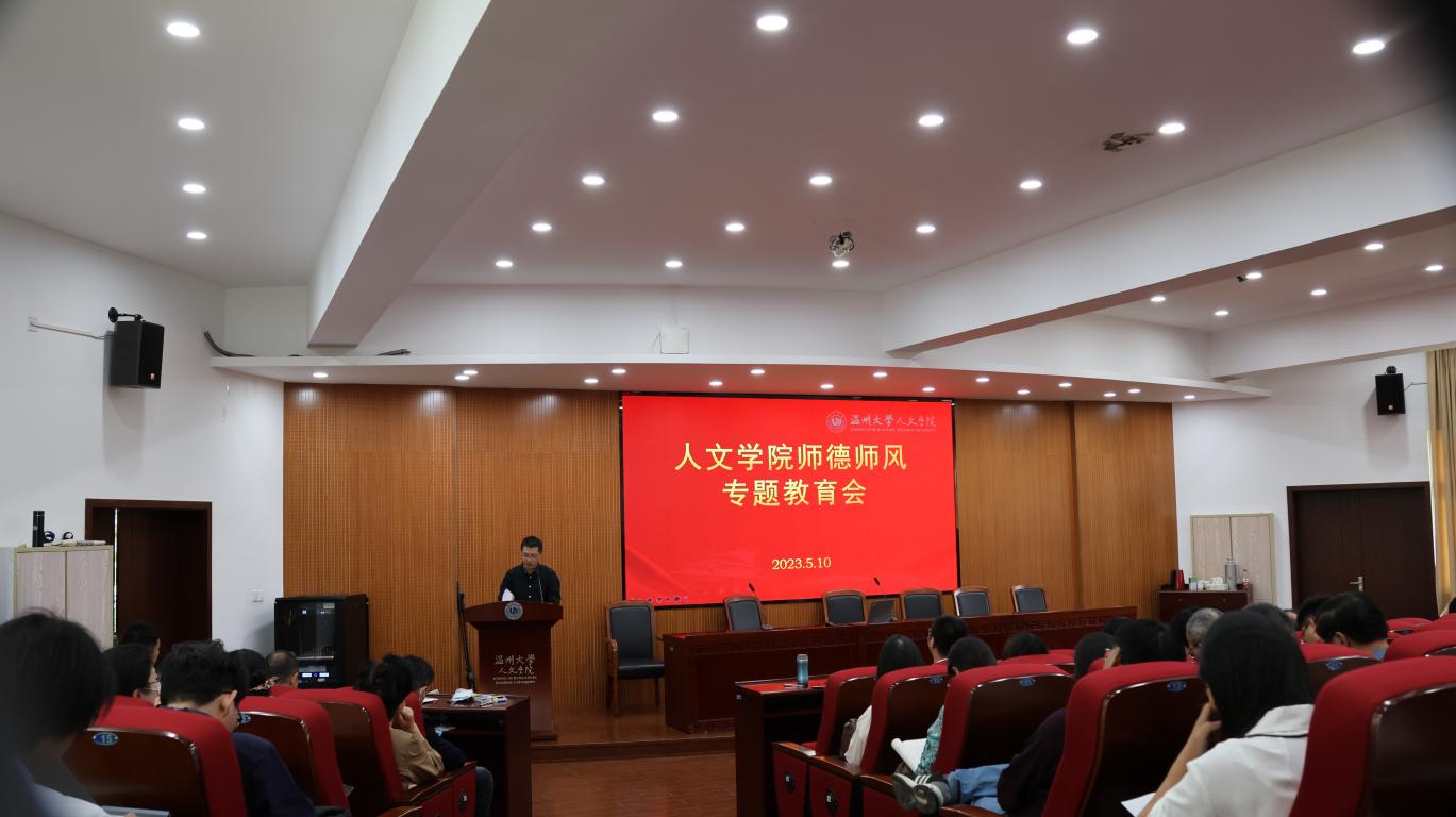 为深入贯彻落实《中共中央国务院关于全面深化新时代教师队伍建设改革的意见》、教育部等七部门《关于加强和改进新时代师德师风建设的意见》等文件精神,根据全省教育系统师德师风问题整治工作视频会议和学校师德师风专项工作部署会议精神,5月10日下午,德赢ac米兰官方合作vwin于203报告厅召开全院教工大会暨师德师风专题教育会。学院领导班子和全体教职工参加会议。