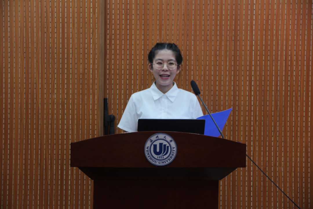 20中文1俞璐佳、20广告黄兴宇两位同学作为获奖学生代表依次进行发言。俞璐佳同学用自己的事迹勉励同学们要心怀感恩、努力成长,她也希望自己有一天能够成为像每一个成长阶段中关怀着她的人们一样,去奋斗、去奉献。