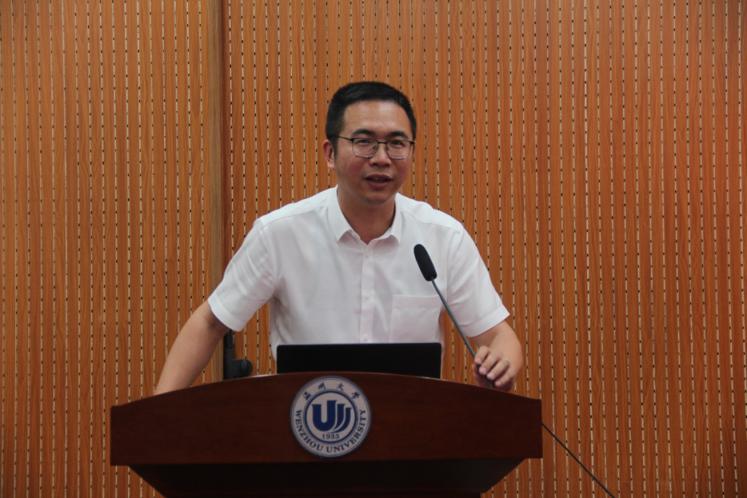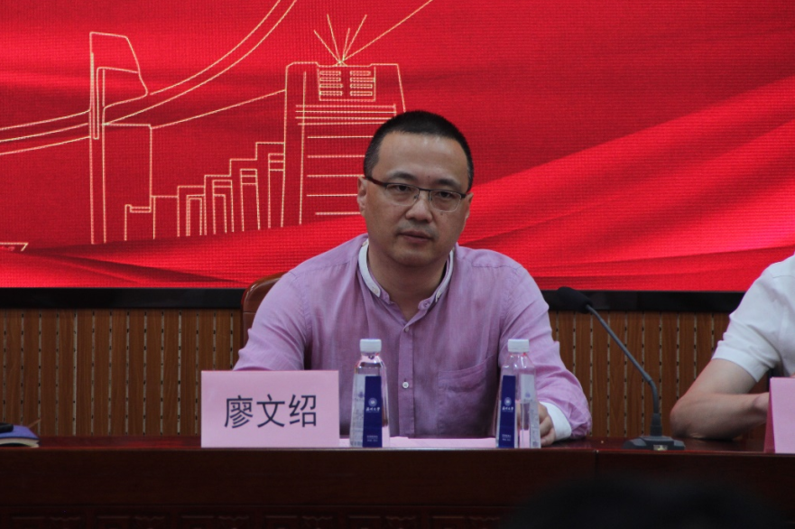 院党委书记江秀景致辞。他向校友廖文绍先生、蔡军令女士捐资设立“瞭望奖助学金”表示衷心的感谢,并对学院“1+1+X”资助模式及奖助学金设立的宗旨进行了简要介绍。随后,他对荣获本次“瞭望奖助学金”的10位同学表示祝贺,并勉励在场同学们向获奖同学学习,学习他们的坚忍不拔、学习他们的自强不息,期待同学们都能在自己的学业和今后工作中创造佳绩。