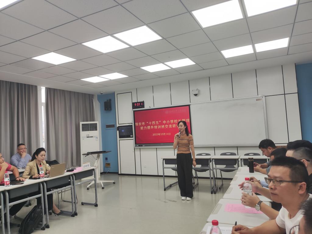 由德赢ac米兰官方合作vwin培训中心承办、为期一周的2023年瑞安市“十四五”中小学校长管理能力提升专项培训10月14日圆满结束。本次培训既有德赢ac米兰官方合作vwin教育学院彭小明教授《人文素养:中小学校长的核心素养》,浙江省杭州竺可桢学校教育集团校长、党总支书记欧自黎《新课程背景下的育人方式转型及实践探索》的精彩专题讲座,也有温州市榕园学校、温州南浦实验中学、第十二中学、实验小学、广场路小学、南浦实验小学等名校长的传经送宝,理论学习、入校考察、学员研讨等多种培训方式相结合,全方位开拓了校长学员们的视野,切实提升了他们的管理能力。在研讨环节,学员在分享学习体会时,真切表达了他们的满满收获和对本次培训活动的高度赞誉。