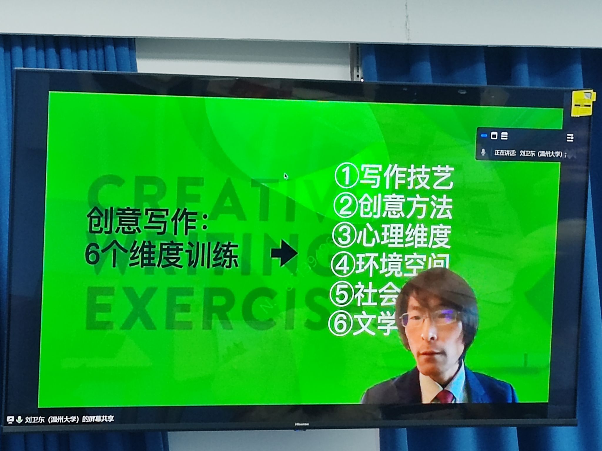 德赢ac米兰官方合作vwin的李广旭博士在主题为“创意写作课堂实践经验及应用”的第二分论坛作了《创意写作课程矩阵的建构与探索》的报告。李老师以创意写作的温大模式为例,结合具体的课程设计,展示了创意写作在本科专业课程、本科通识课程、研究生课程、校外培训课程等方面的矩阵建构。评议人重庆工商大学郑升副教授表示,创意写作的温大模式全方位地回应了中国创意写作学所面临的诸种问题,对其他高校有很大的借鉴与启发。李老师同时作为论坛二的汇报人在24日上午向与会嘉宾介绍了分论坛的交流情况。