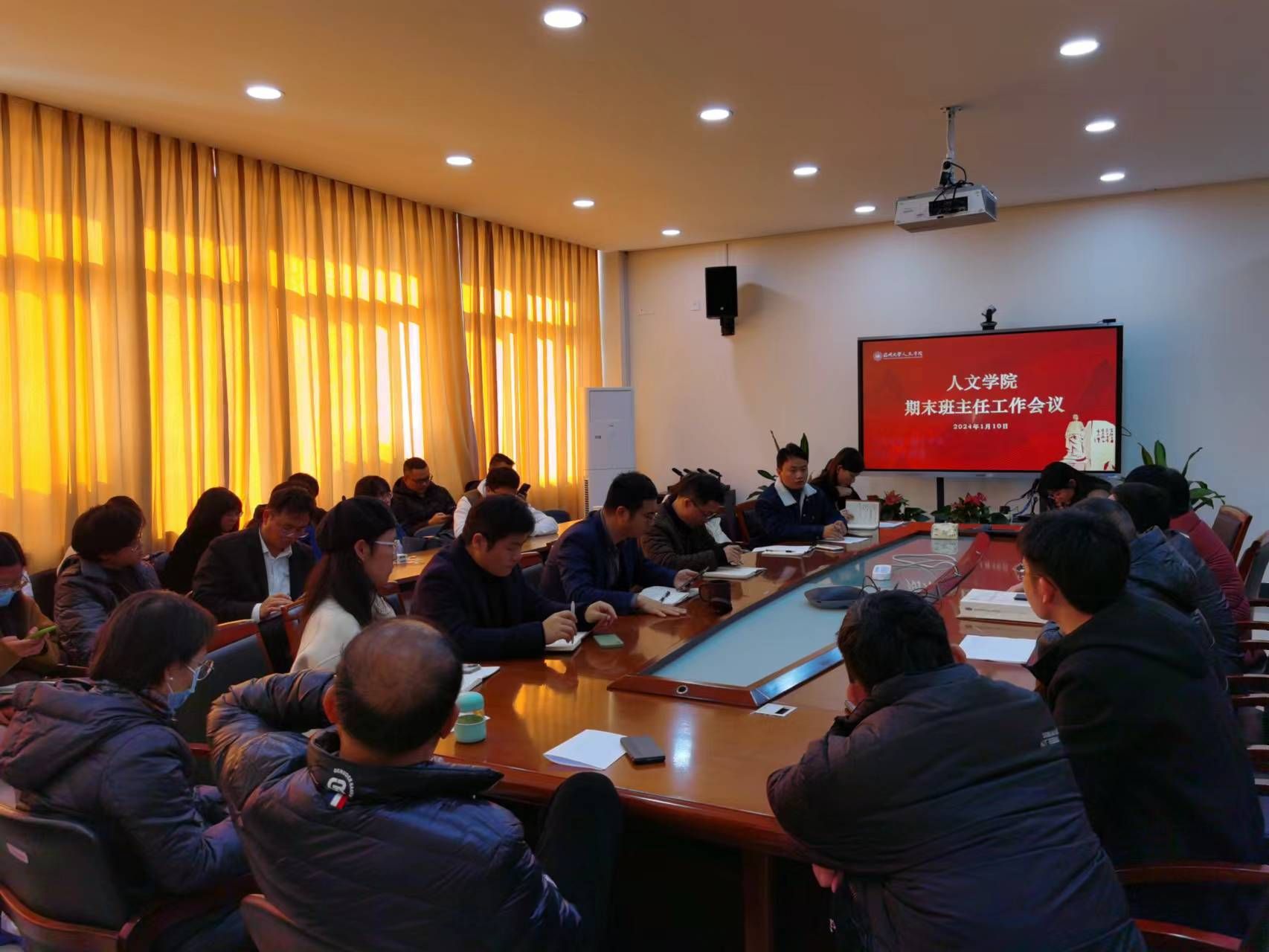 2024年1月10日下午,德赢官网在人文楼213会议室召开了期末班主任工作会议。参加本次会议的有院党委书记江秀景、院党委副书记魏一,学工办副主任申业磊、辅导员李丹萍、张丹妮、刘炳林、刘恭宇、王佳慧以及各班班主任。会议由院党委副书记魏一主持。