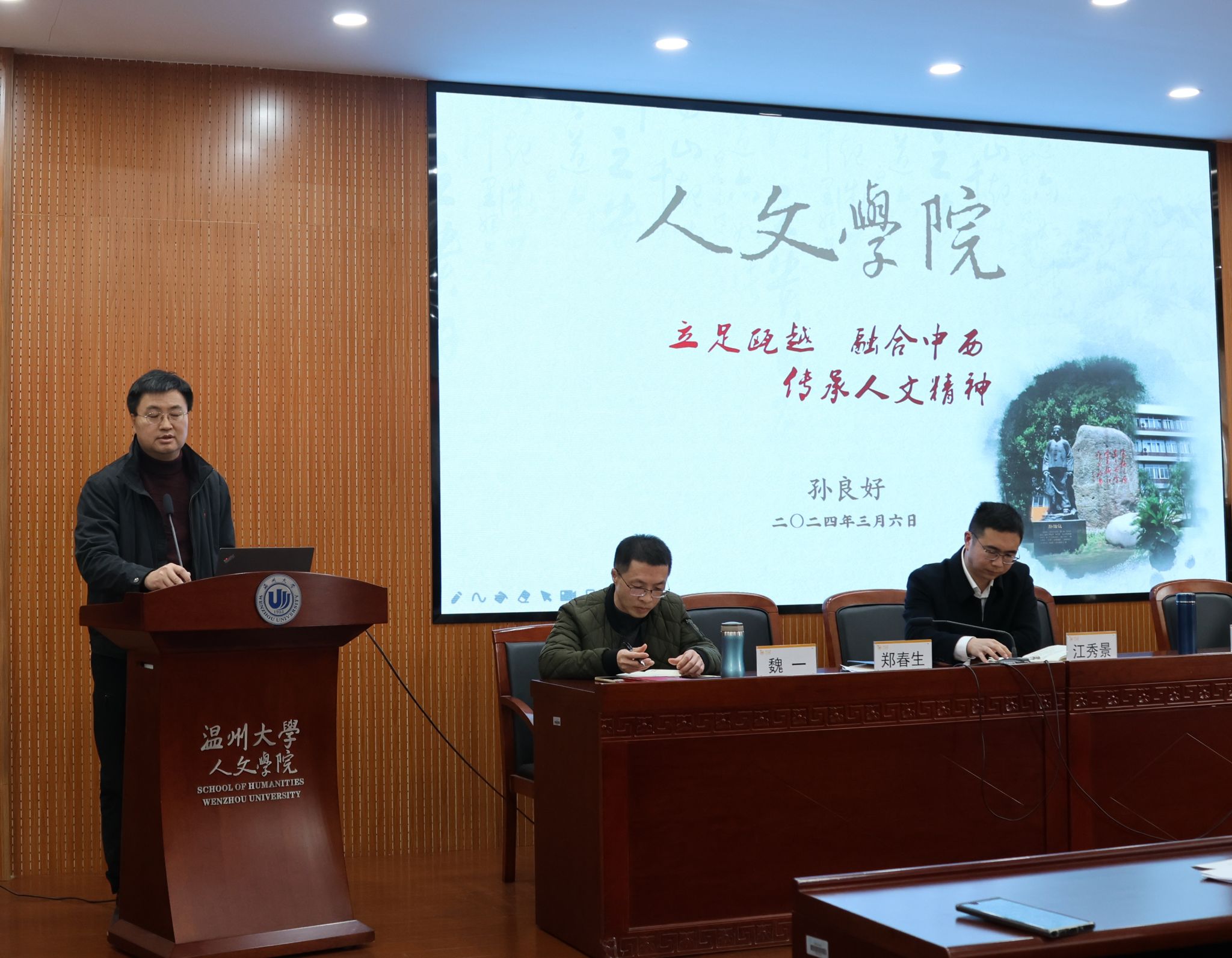 孙良好院长作2024年度人文学院工作报告。孙院长指出,2024年德赢ac米兰官方合作vwin的工作主题主线为“聚焦1612,谋划2024” ,即锚定申博目标,聚焦6个“一流”(一流人才、一流学科、一流专业、一流基地、一流环境、一流治理),实施12个重点项目,奋力推进德赢ac米兰官方合作vwin高质量内涵式发展。随后,孙院长对12个重点项目进行了强调和部署。一是全力推进中国语言文学学科申博最后一环;二是人才引育工作力争突破完成;三是持续推进国家语言文字推广基地建设;四是积极培育教学成果;五是做好学生学科竞赛提质项目;六是提升就业率升学率;七是力争学生规模扩容;八是做好继续教育增效项目开发;九是提高团组织领航聚力;十是夯实党建基础;十一是提升学院凝聚力建设;十二是做好岗位聘任及分配方案调整。孙院长强调,德赢ac米兰官方合作vwin全体同仁要围绕学院“聚焦1612,谋划2024”的主题主线,凝心聚力,赓续前行,奋力推进德赢ac米兰官方合作vwin高质量内涵式发展。