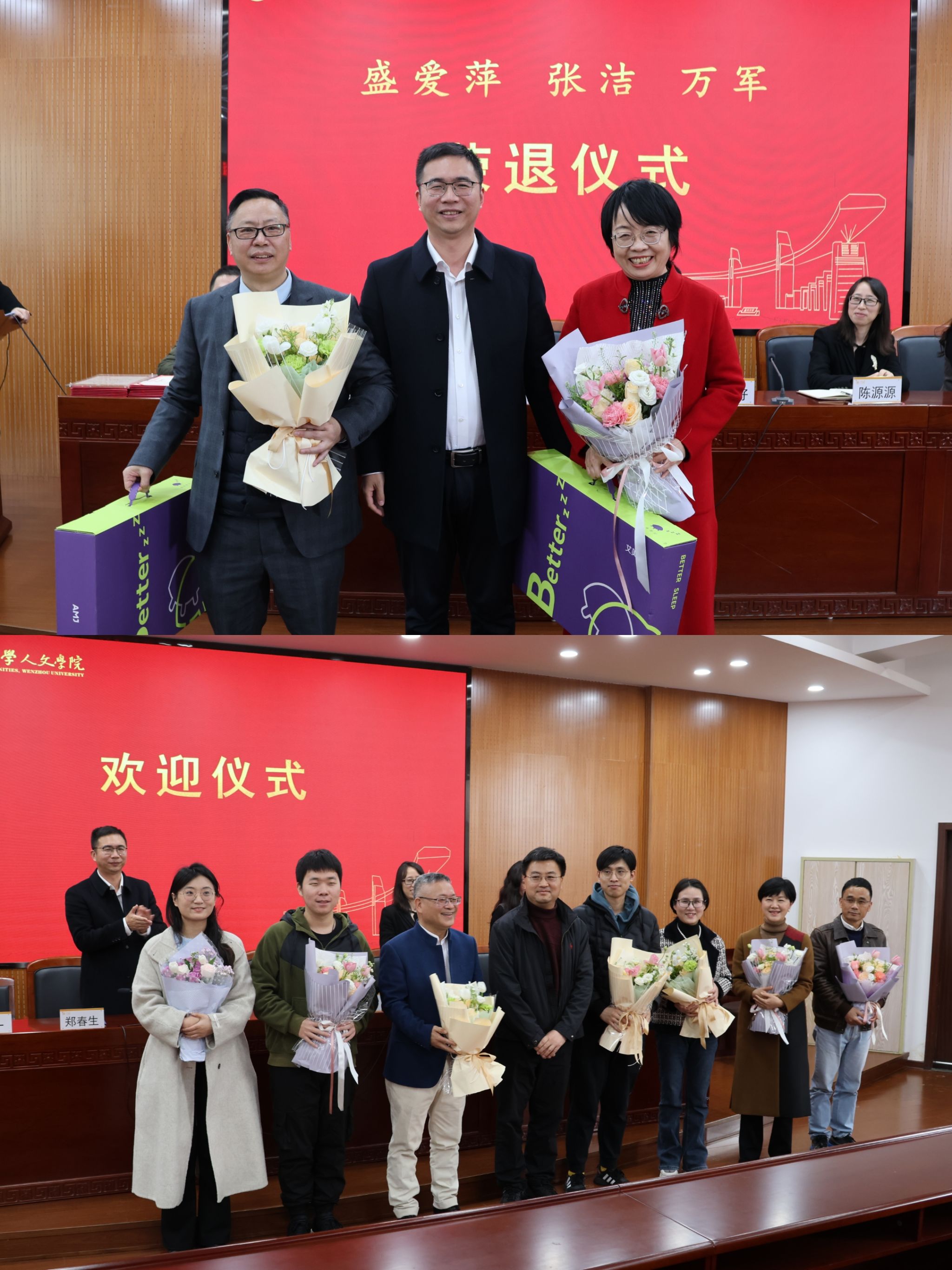 会议首先举行了教师荣退和欢迎仪式。党委书记江秀景为退休的盛爱萍、张洁老师送上鲜花与纪念品,表达了学院的美好祝福。两位退休教师分别表达了对学院举办此次欢送活动的感谢之情,对相伴相随近三十年的德赢ac米兰官方合作vwin同事伙伴充满不舍,对学院未来的发展充满期待,表示会一直关注并支持学院的发展。孙良好院长对新加入德赢ac米兰官方合作vwin大家庭的七位老师表达了诚挚的欢迎,欢迎有志之士来到德赢ac米兰官方合作vwin潜心教书科研,成就梦想。