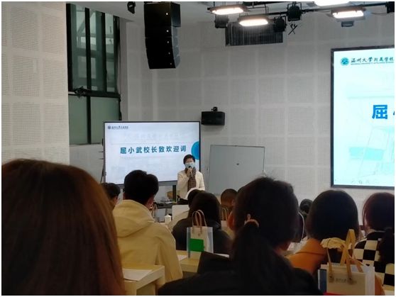 首先,德赢ac米兰官方合作vwin附属榕园学校校长屈小武致辞,对德赢ac米兰官方合作vwin同学们的到来表示欢迎,给予了“实习生是学校宝贵的资源”的高度评价,随后,屈校长对学校的办学理念,设施构成与课程安排作了详细介绍,并鼓励实习生们珍惜宝贵的实习机会,积极、大胆地参与到实习中来。之后,德赢ac米兰官方合作vwin郑春生副院长讲话,希望实习生们秉持心怀感恩、包容回馈等原则,在实习过程中虚心学习、踏实工作并抓住机会提升教学技能和综合素质。而后,德赢ac米兰官方合作vwin历史系学生代表陈怡恬发言,号召大家好好利用这次实习机会,认真对待实习期间的每一项工作,不断自我反思。最后,温州榕园学校优秀教师代表谢慧娟老师与潘素静老师分别发言,分享了自身实习与教学经验,强调优秀教师指导对于个人奋斗的重要性,鼓励实习生们珍惜学习机会。